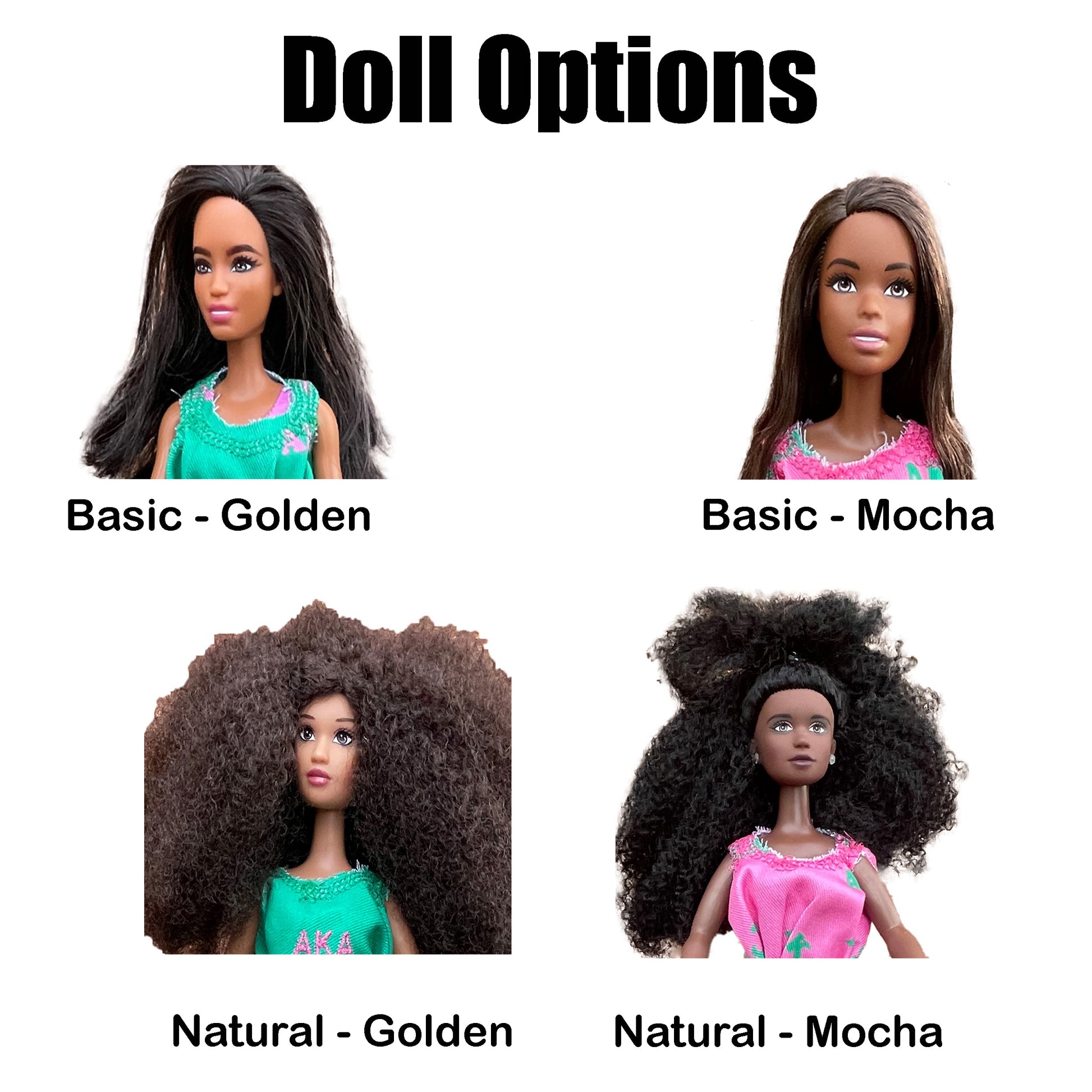 This fashion doll with AKA-themed Barbie clothes functions as the perfect gift. Upgrade your home or office desk decor with the stylish Alpha Kappa Alpha Sorority Barbie. This elegant doll comes with a doll stand, making it the perfect addition to any tabletop. Show your support for your favorite sorority while adding a touch of sophistication to any room.
