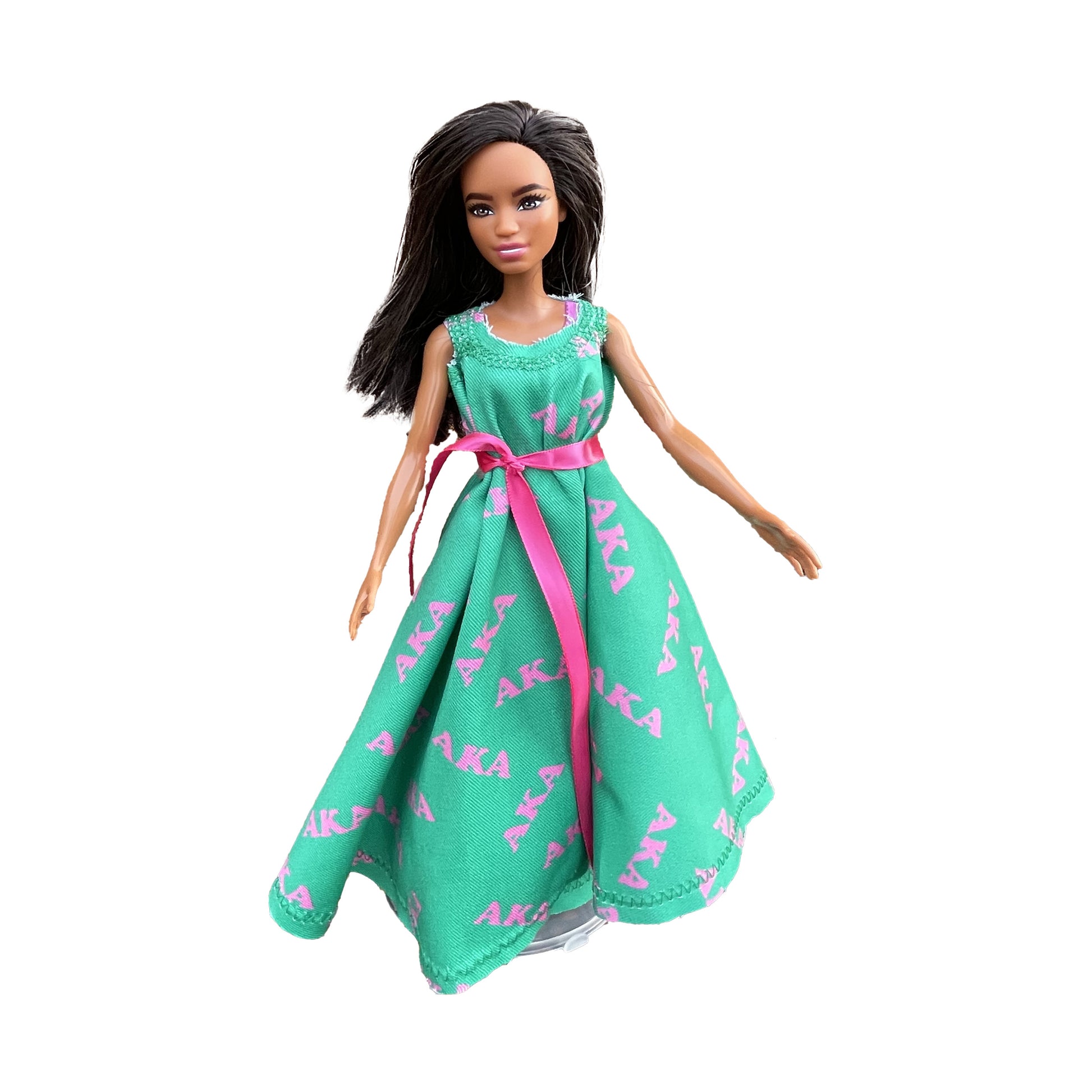 Alpha Kappa Alpha Doll with Pink and Green Dress (12in. Tall)
