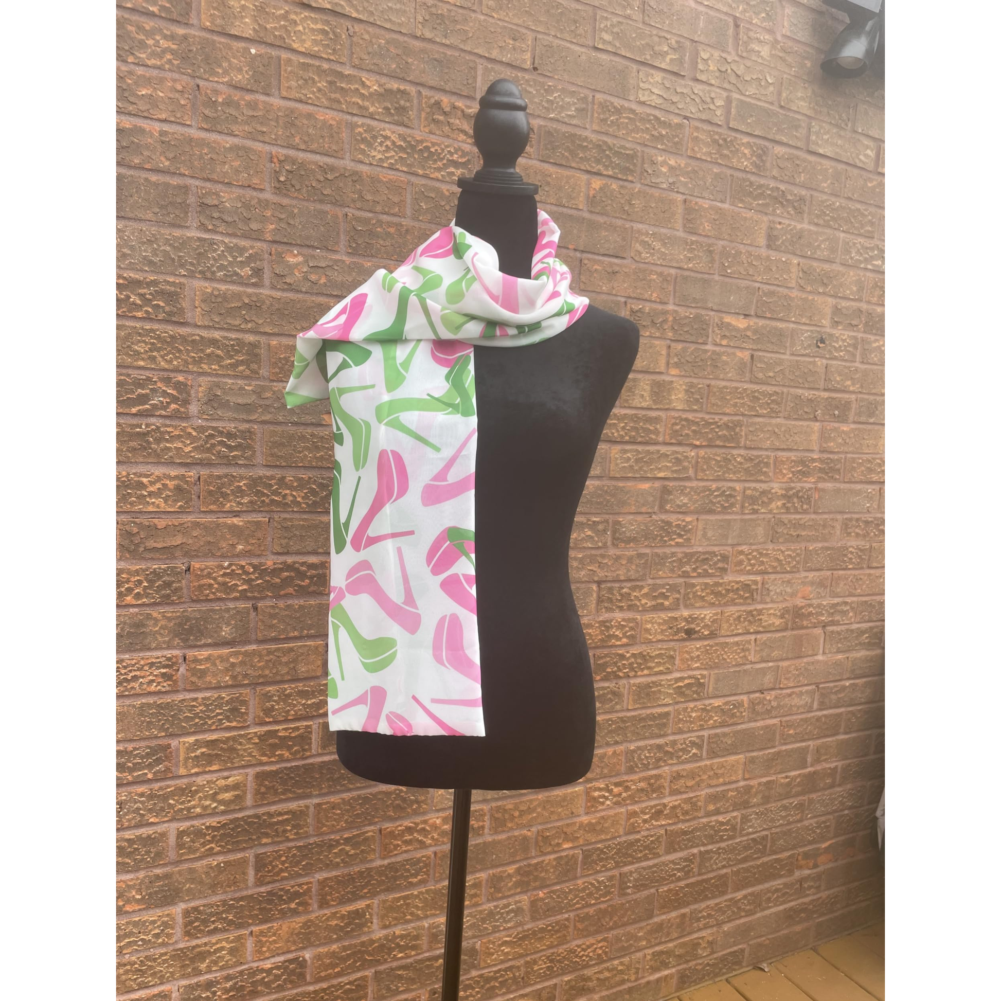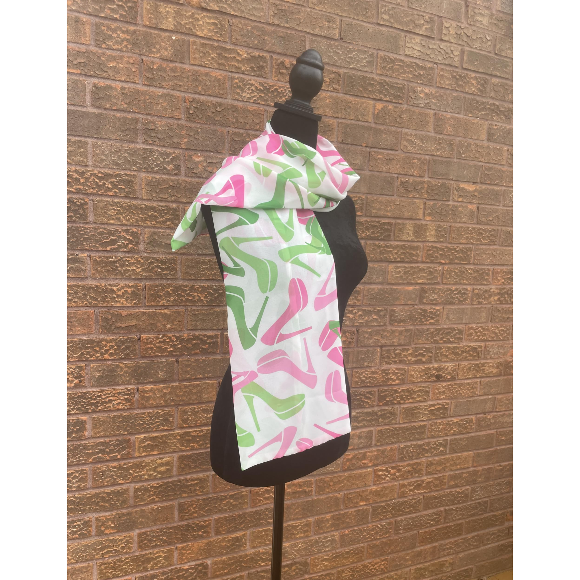 Pink and Green Necktie Lightweight Chiffon 48in x 8in - White Heels