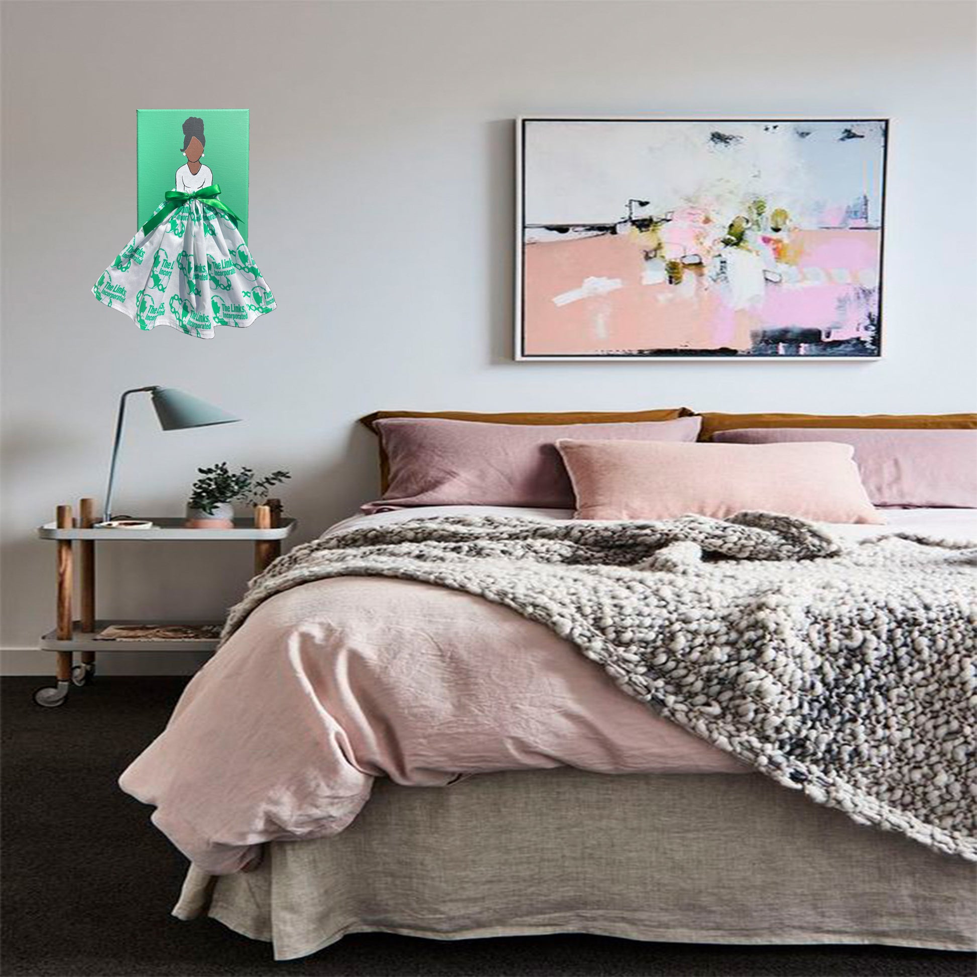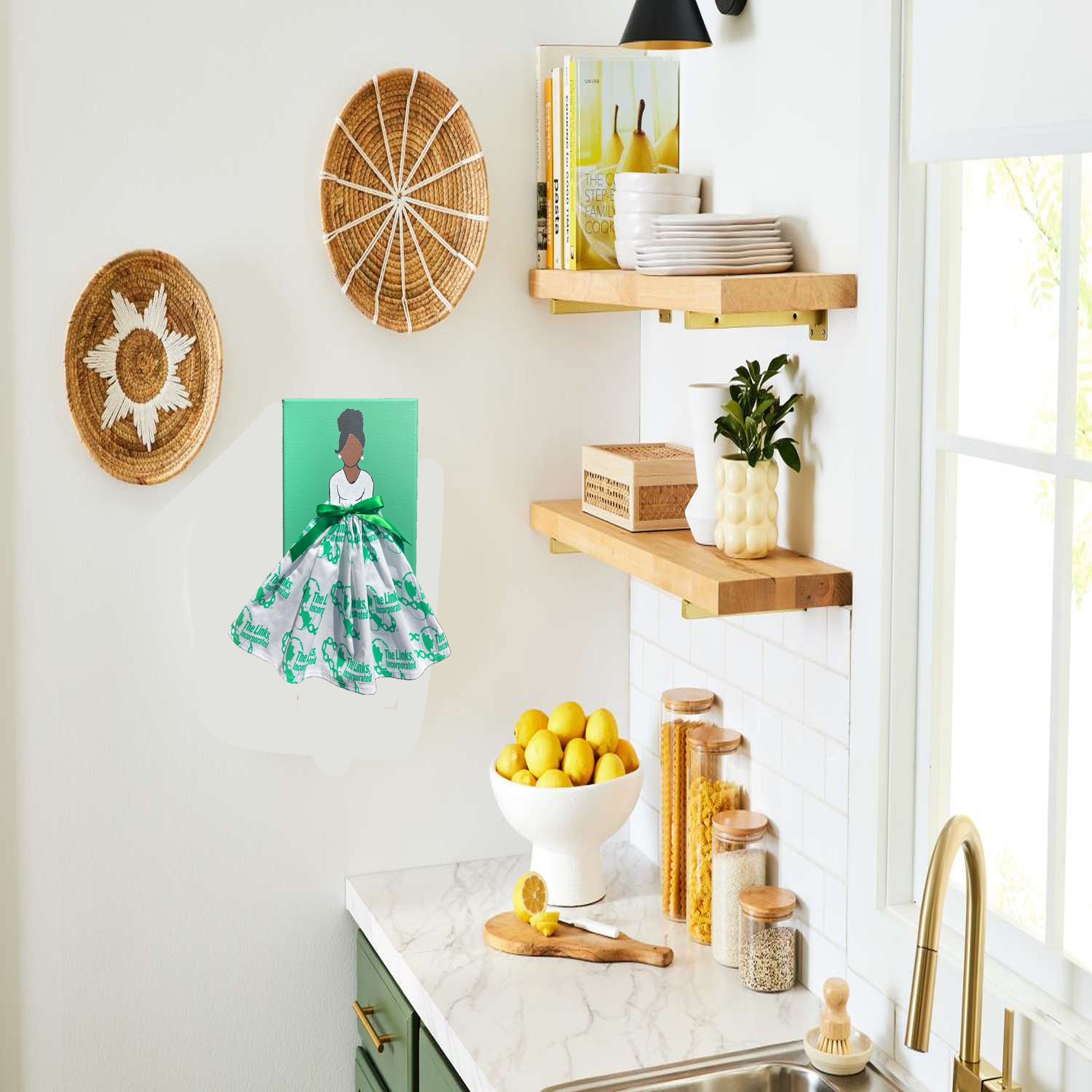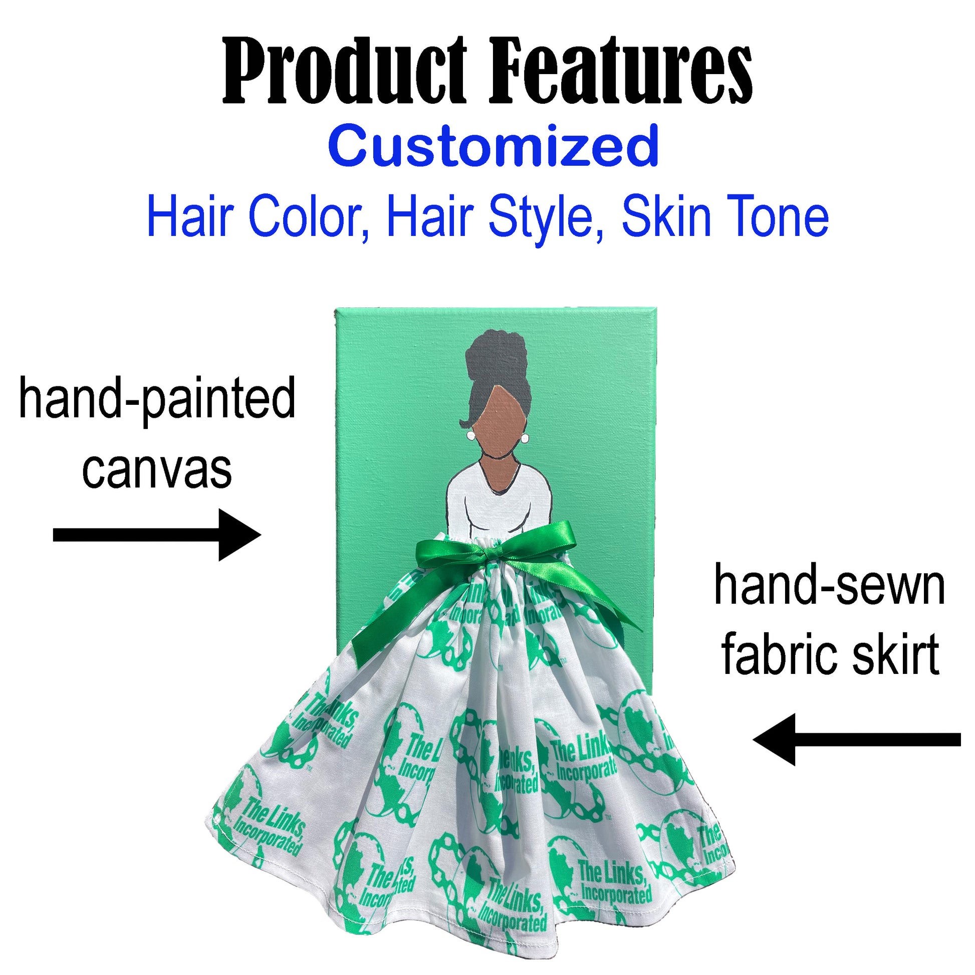 Made to order. The perfect decor gift to beautify a home wall or office space for a member of Links, Incorporated. Show your Links pride and affiliation with this stunning hand painted green and white artwork. Includes hand-sewn fabric skirt and optional personalization.