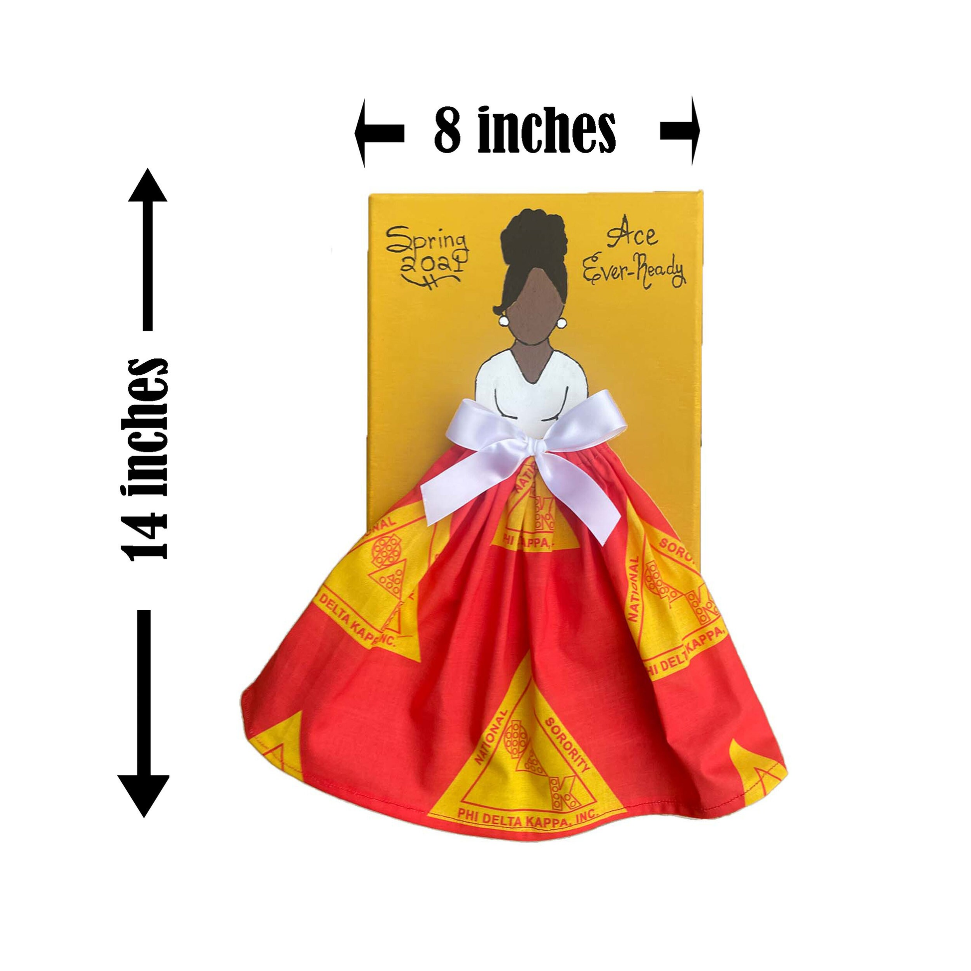 Made to Order. The perfect Phi Delta Kappa decor gift to beautify a home wall or office space. Show your PDK pride and affiliation with this stunning hand painted scarlet and gold artwork. Includes hand-sewn fabric skirt and optional personalization.