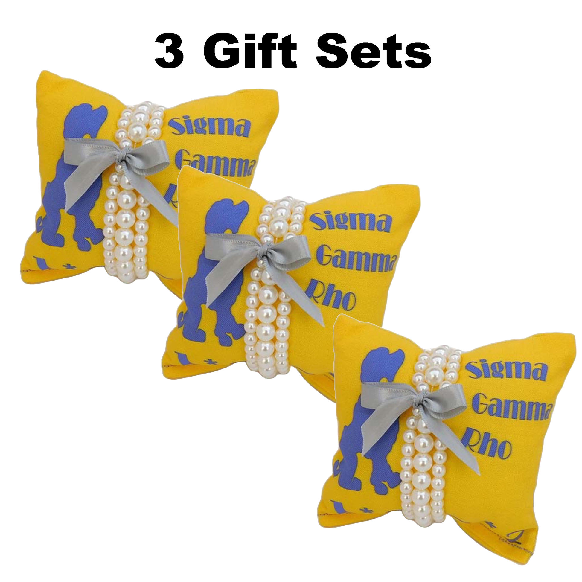 Sigma Gamma Rho Sorority Gift Pearl Bracelet Sets on Blue and Gold Jewelry Pillow (4in.x4in.)