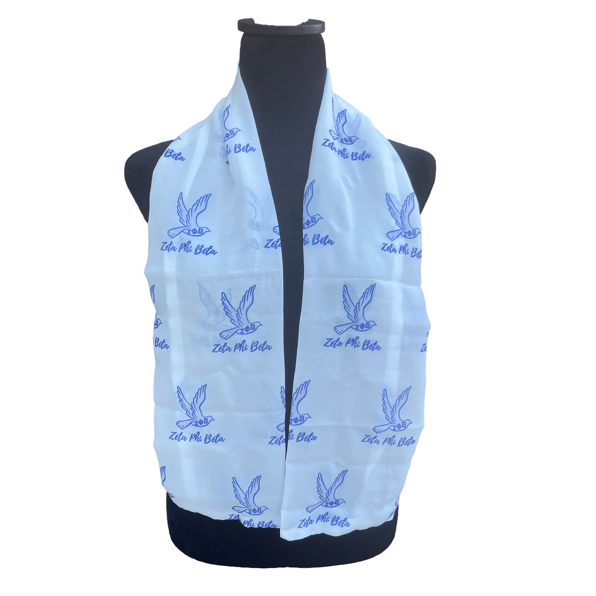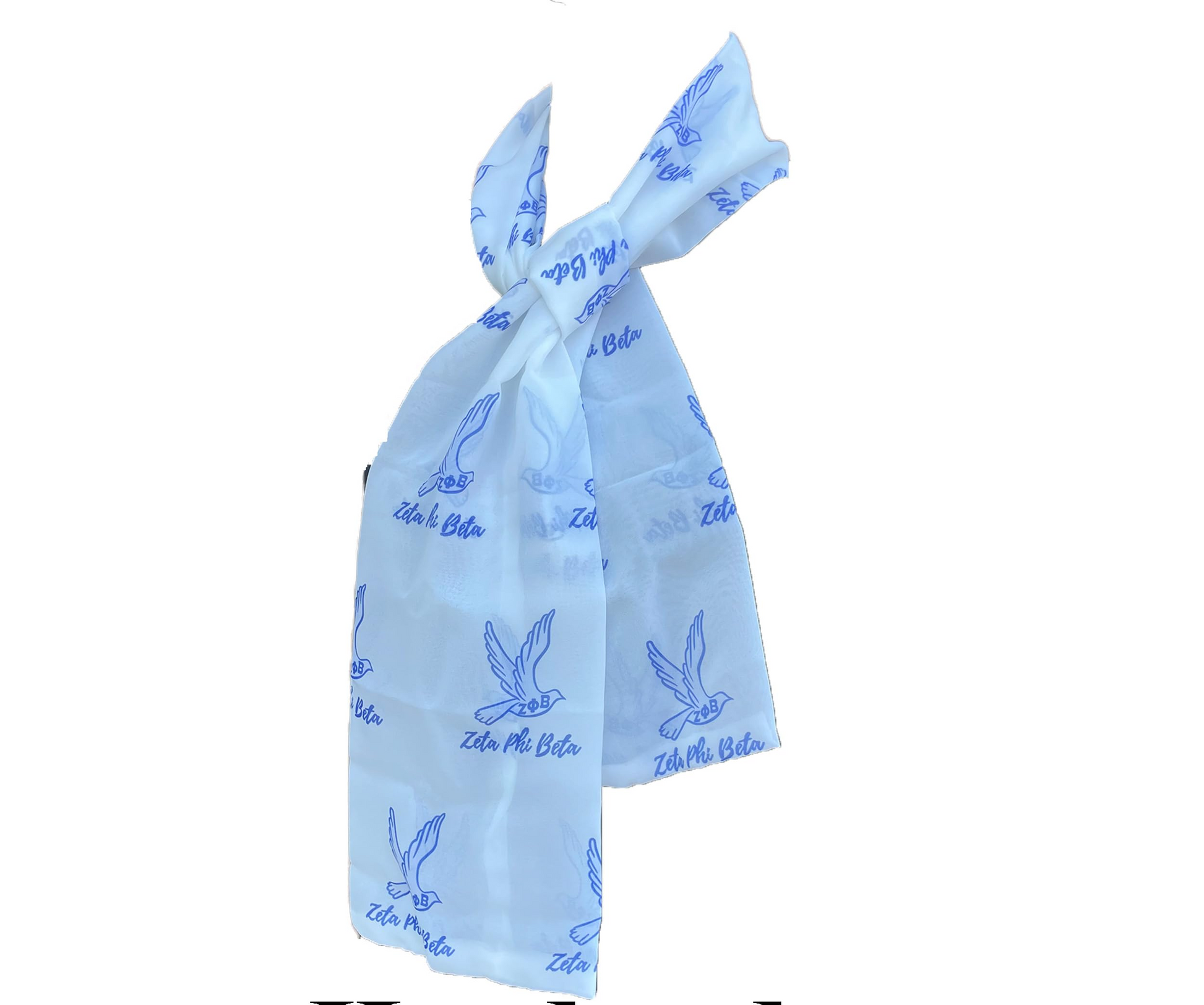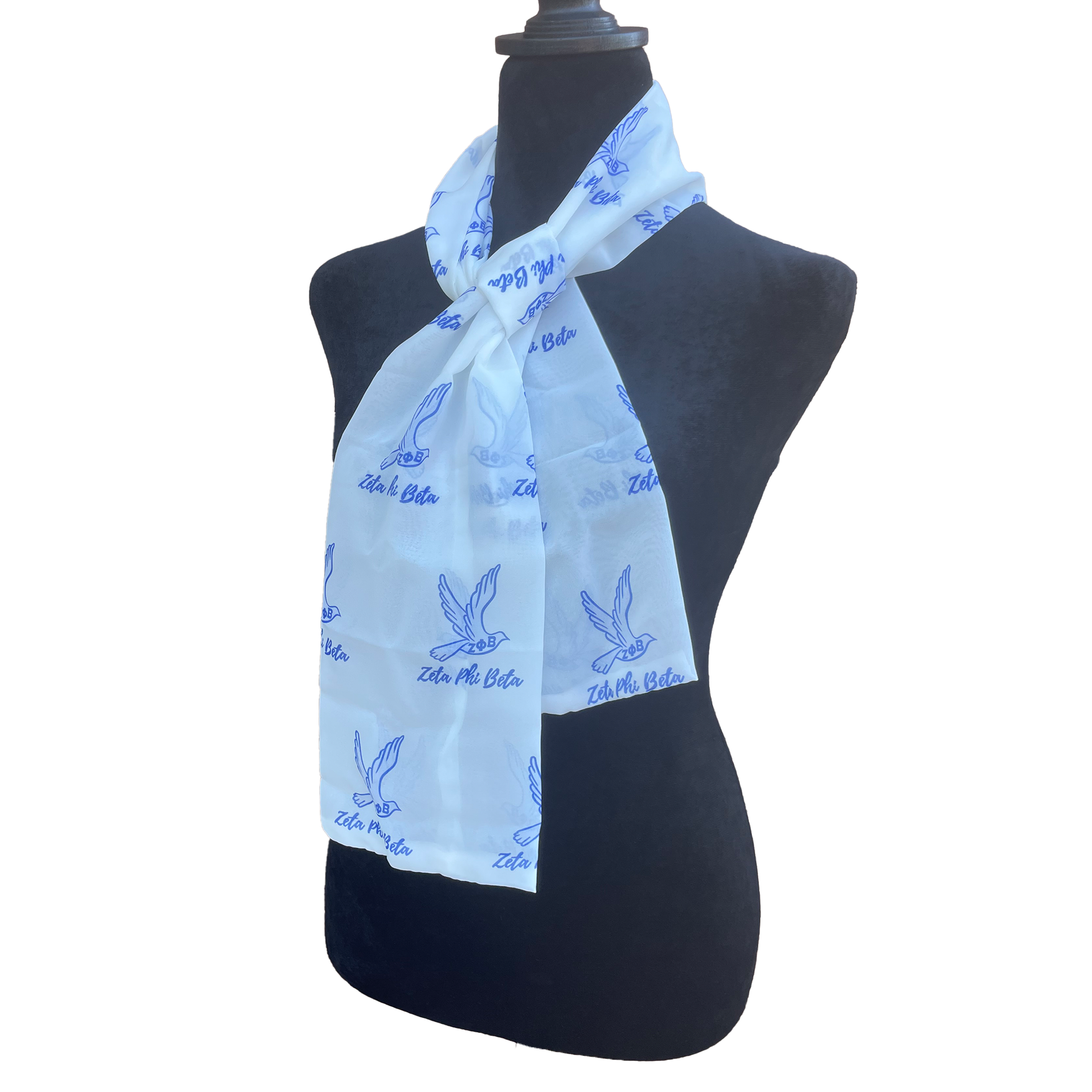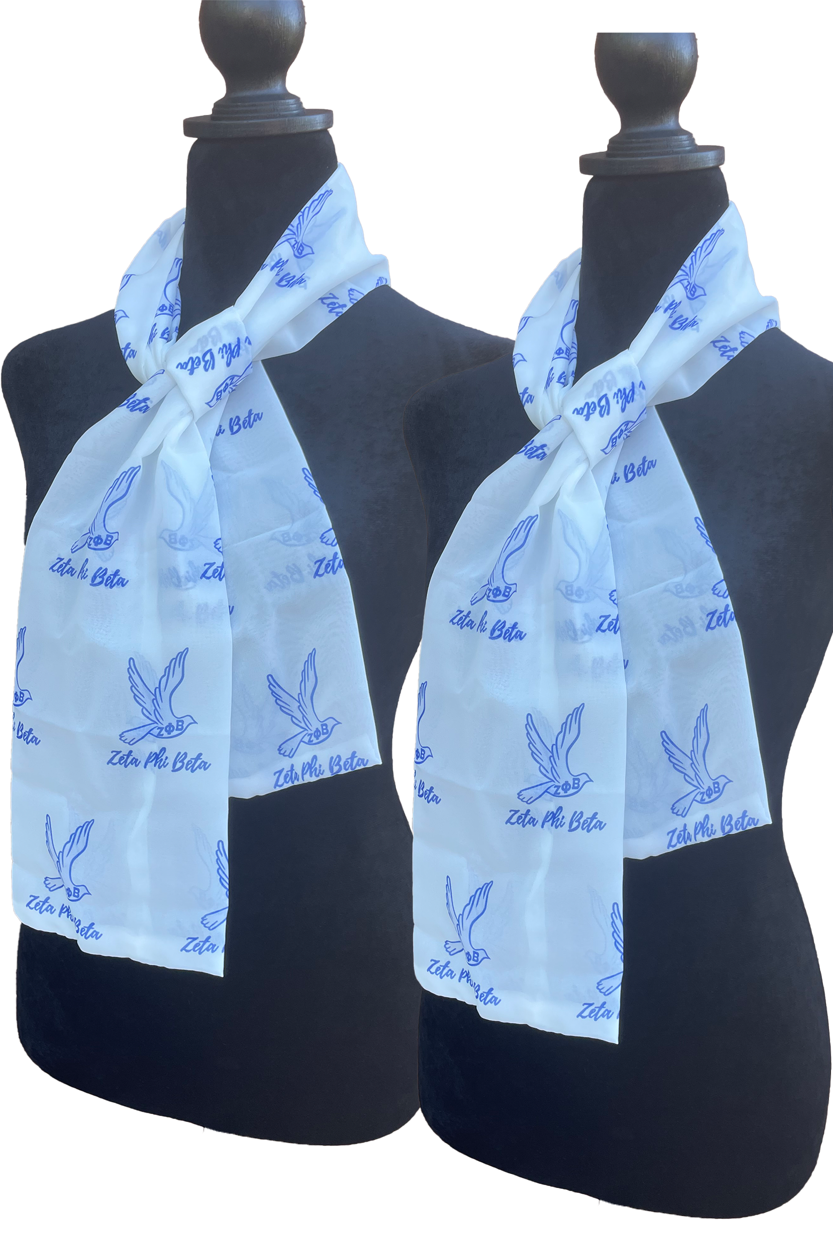 Zeta Phi Beta Sorority Necktie Lightweight Chiffon 48in x 8in - White