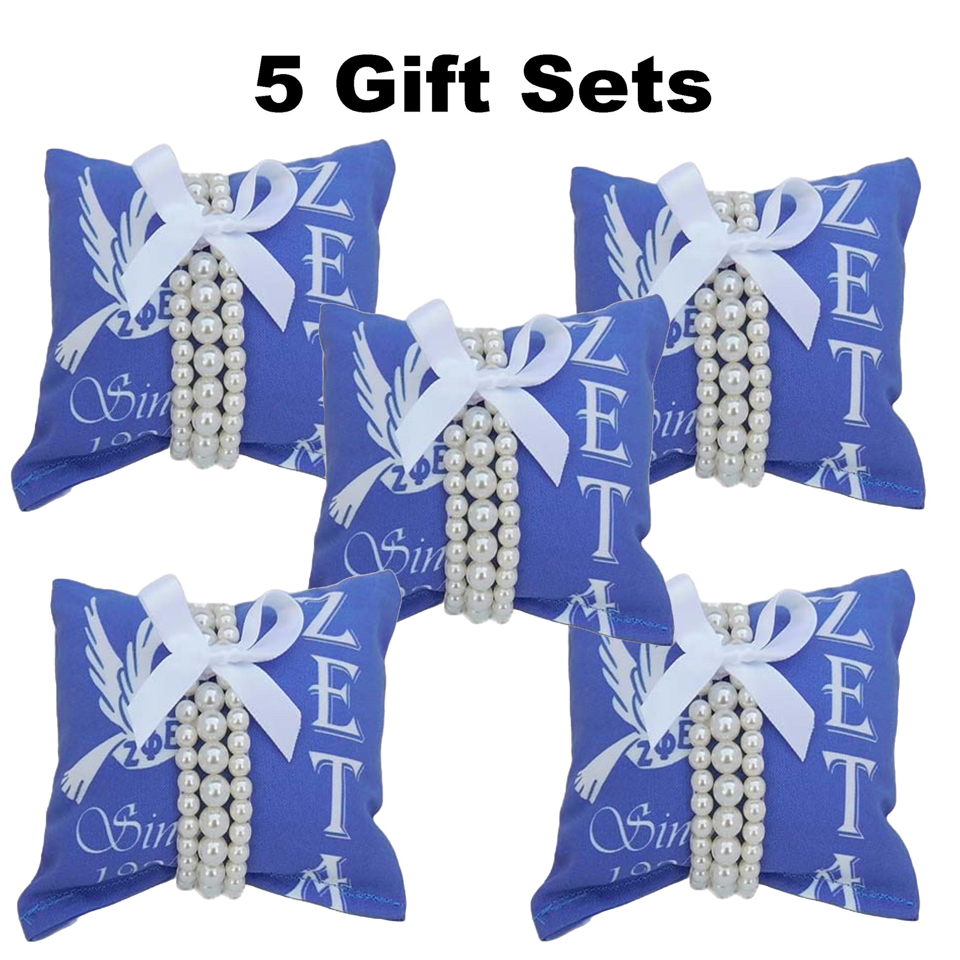 Zeta Phi Beta Sorority Gift Pearl Bracelet Sets on Blue Jewelry Pillow (4in.x4in.)